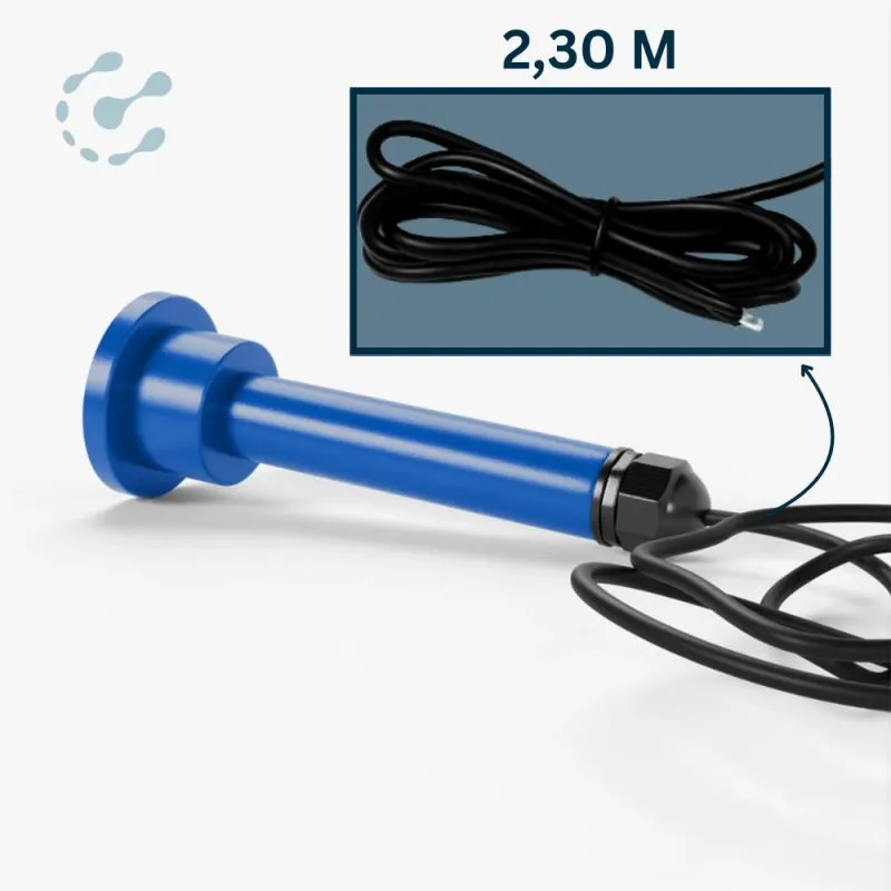 O sensor de nível ultrassônico tem um alcance de até 10 km, sendo ideal para áreas remotas como fazendas, indústrias e poços.